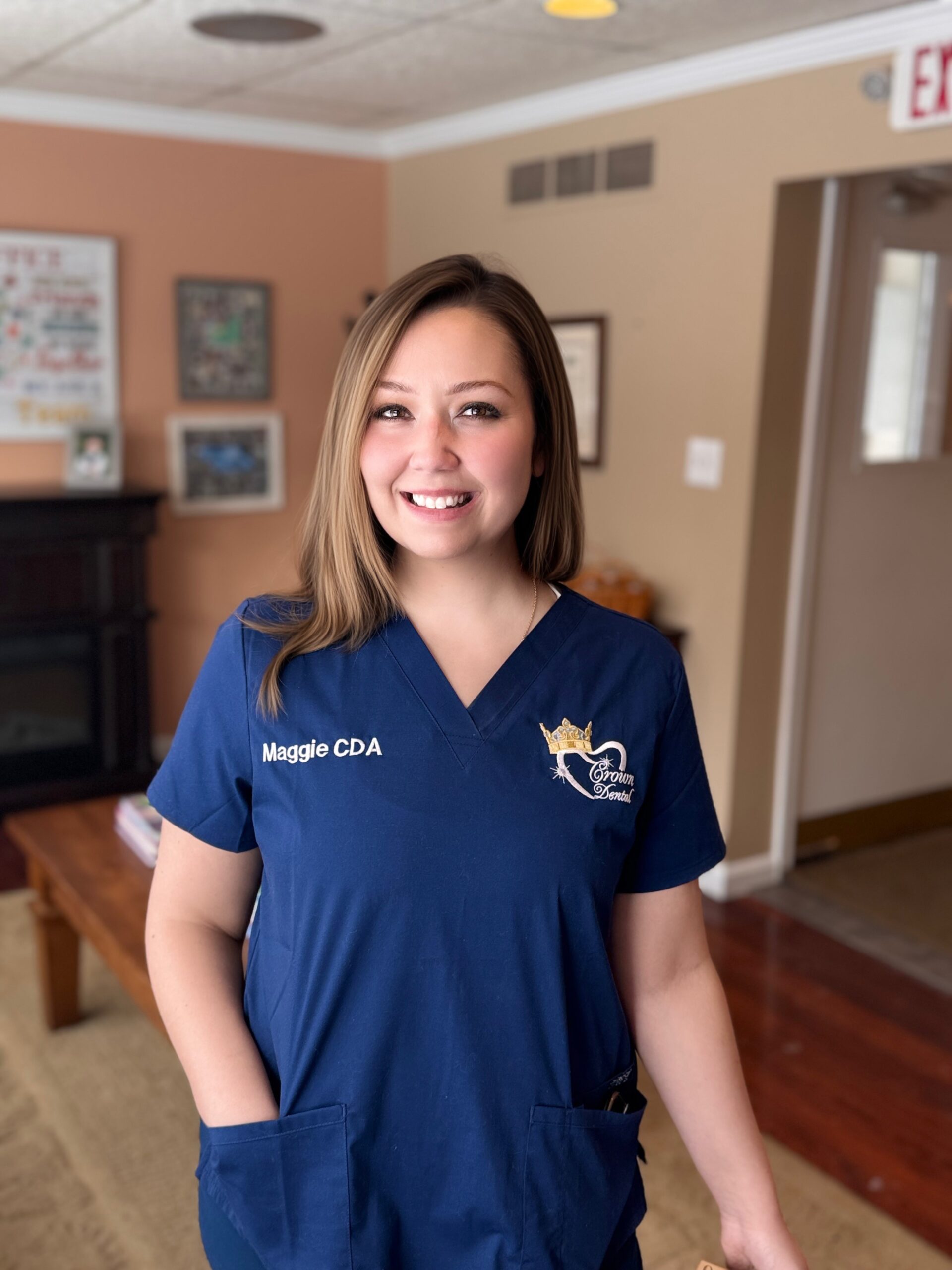 At Crown Dental, Magdalene is the primary dental assistant and plays an integral role in patient care, clinical support, and keeping the office running smoothly. She is a Certified Dental Assistant who graduated from the Community College of Rhode Island in 2020 and brings over four years of experience from oral surgery, where she worked as an implant coordinator and general anesthesia assistant. Magdalene enjoys connecting with patients, helping them feel comfortable, and adding a little humor to make dental visits more relaxed and enjoyable.